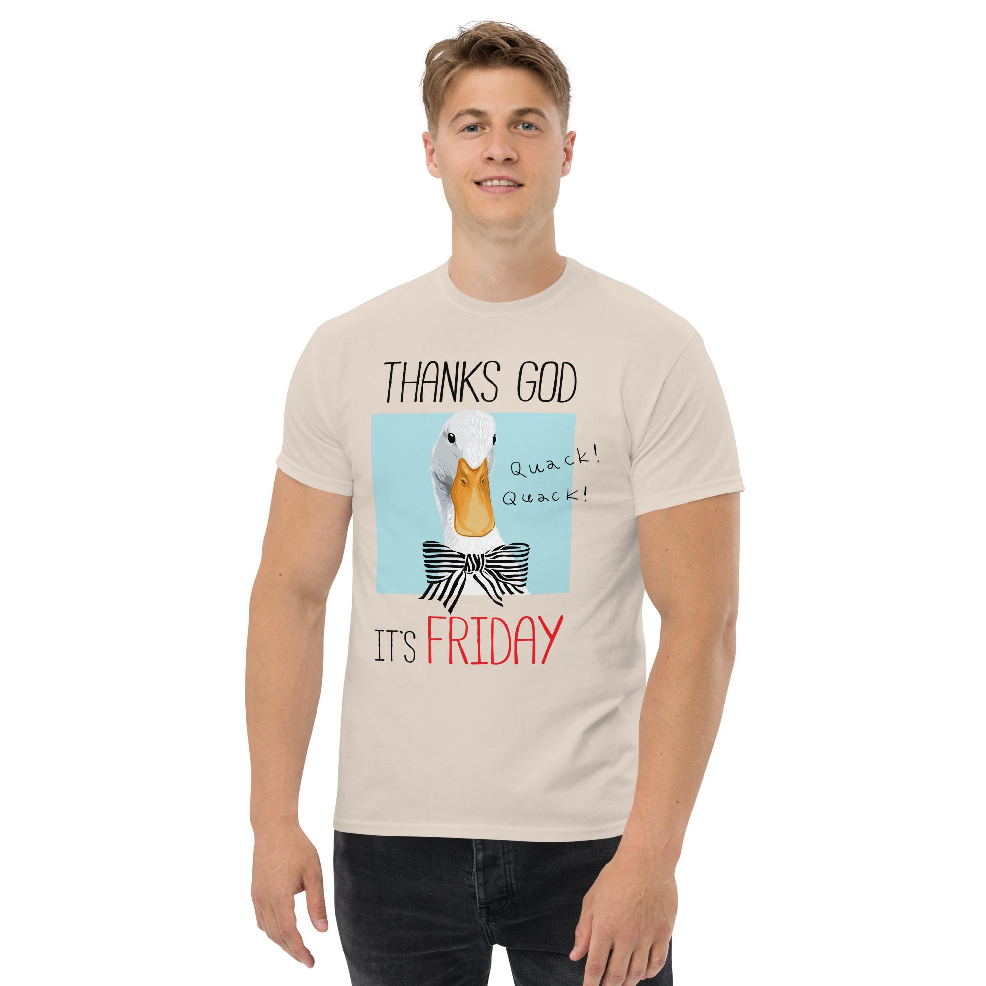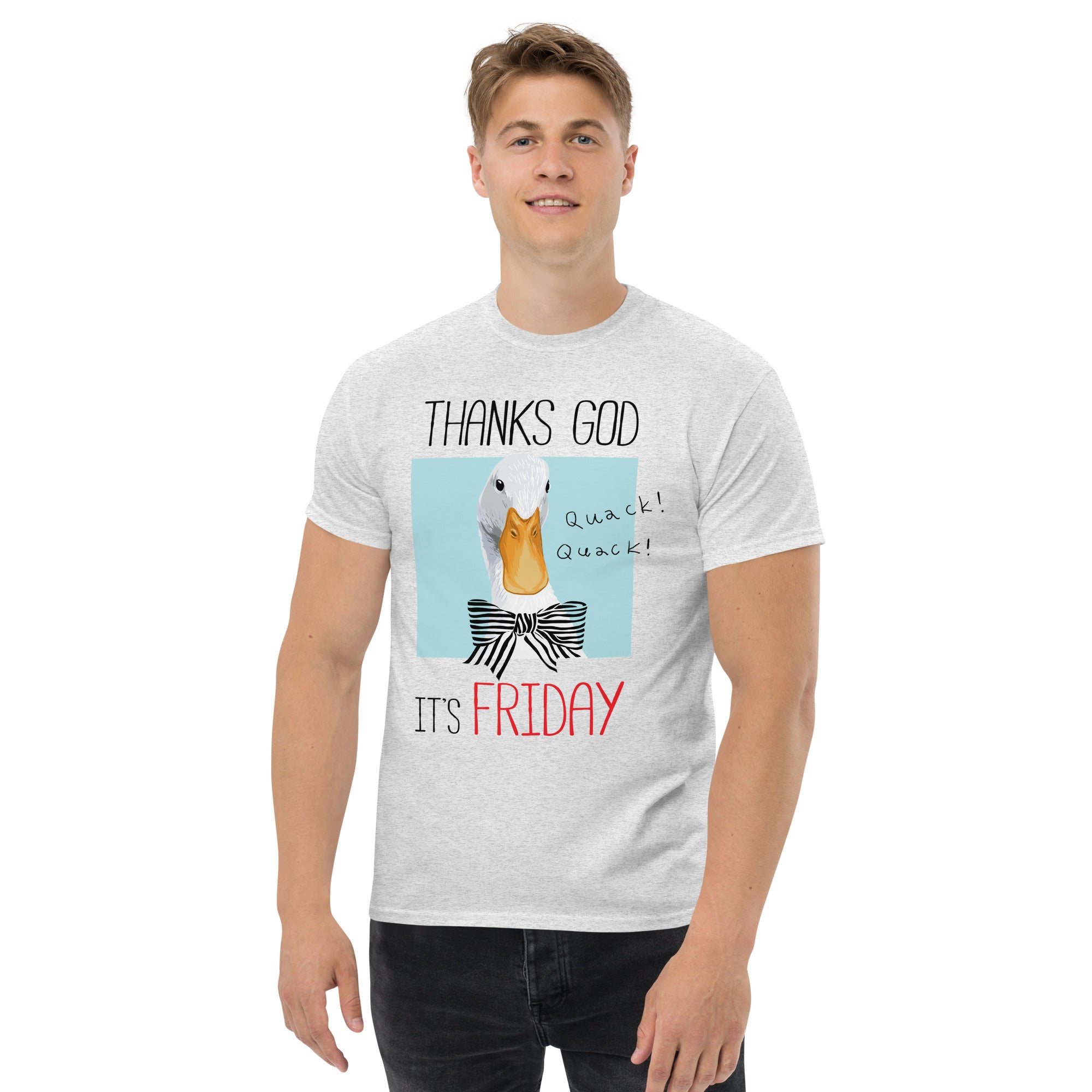 Das Unisex-T-Shirt „It's Friday Quack! Quack!“ ist ein unverzichtbares Kleidungsstück, das Stil, Komfort und Vielseitigkeit vereint. Es besteht aus 100 % hochwertiger Baumwolle (je nach Farbe auch mit Polyesteranteil) und ist weich, strapazierfähig und die perfekte Ergänzung für jedes Casual- oder Streetwear-Outfit.