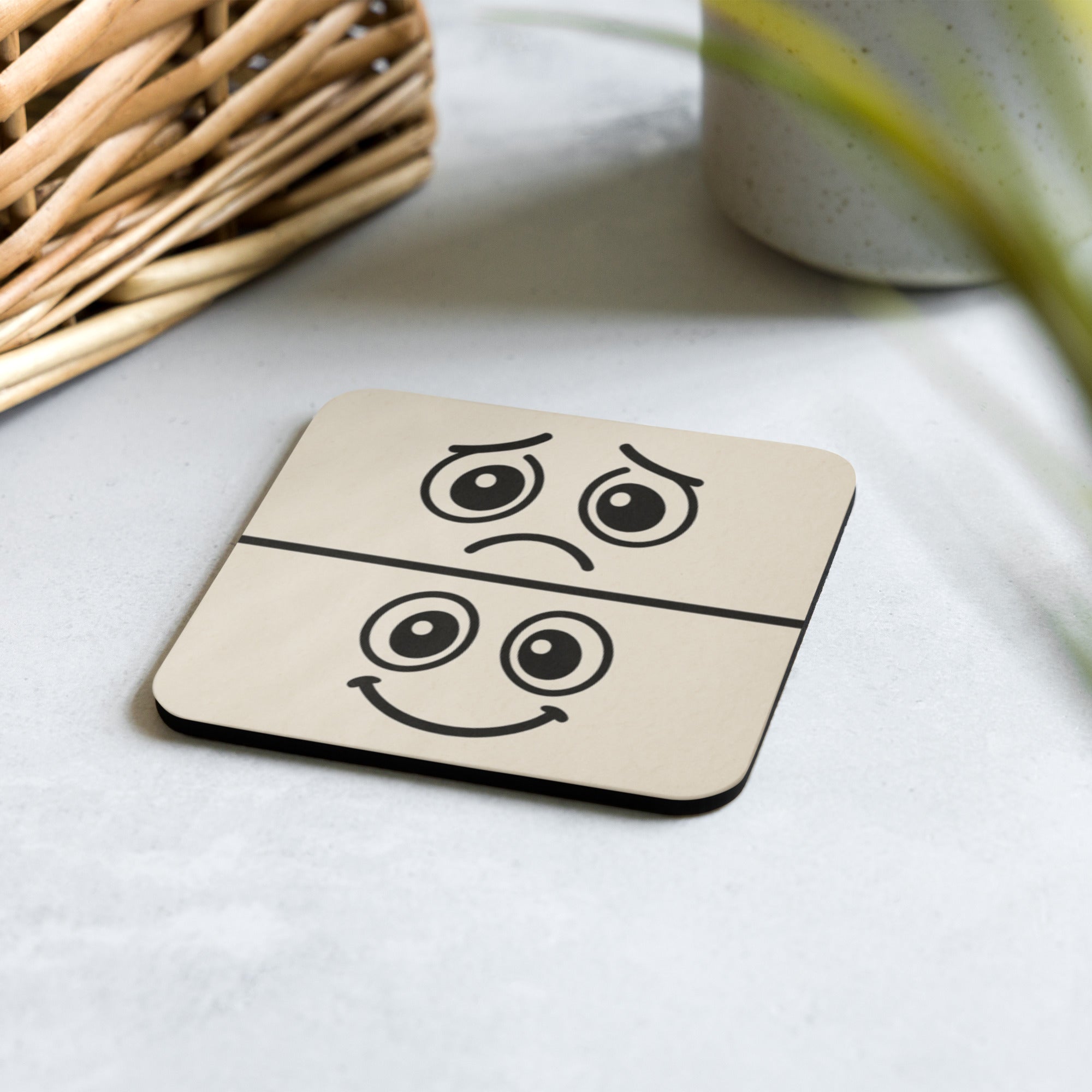 The Biiply Non-Slip Cork or Polyester Coaster with a Customized "Sad Eyes Happy Eyes" Print is the ideal accessory to add a touch of humor and lightheartedness to your relaxing moments. Perfect for coffee, herbal tea, or a drink, it protects bedside tables, desks, and coffee tables from stains, heat, and humidity, bringing a smile to every sip.