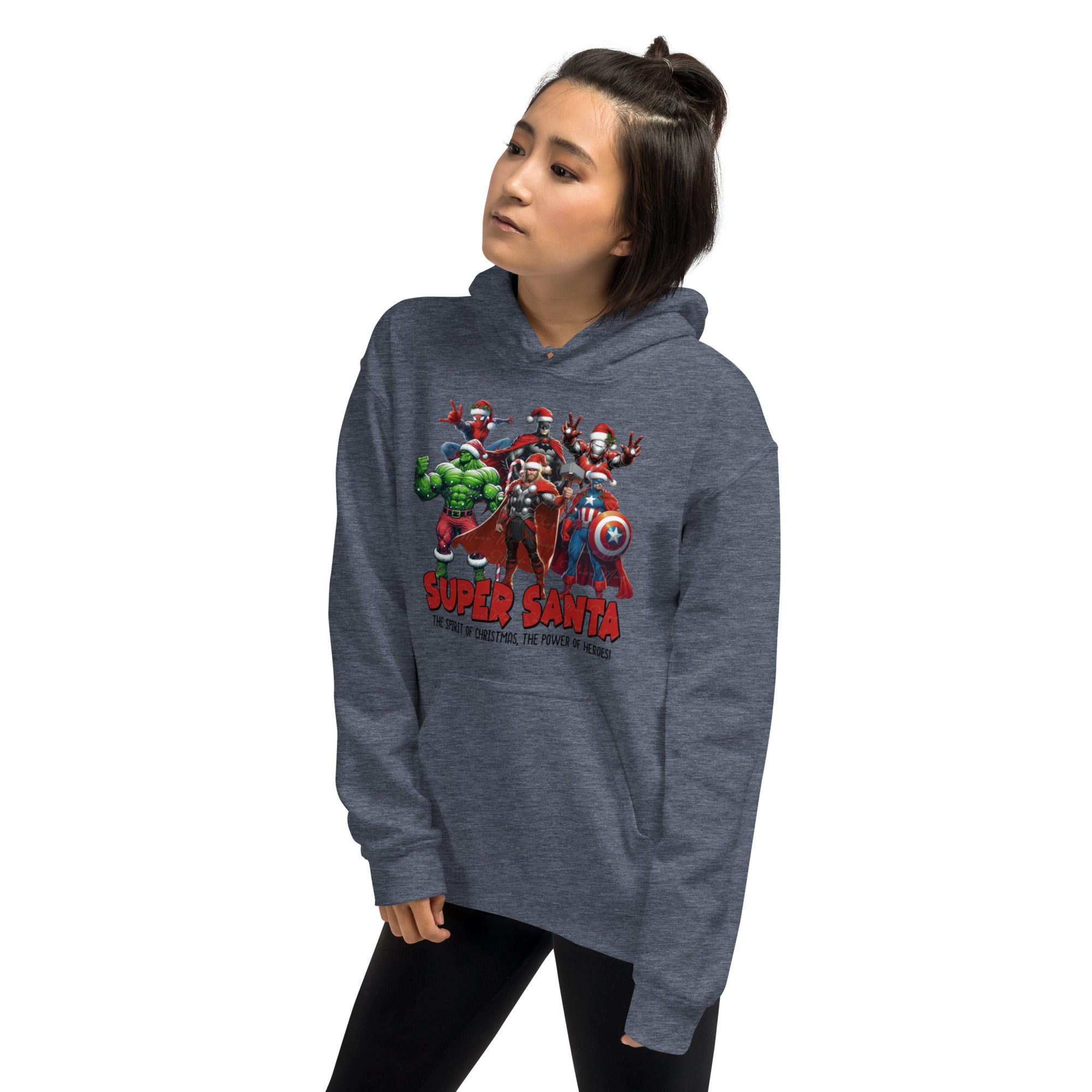 Unisex Printed Sweatshirt – Soft with Hood and Front Pocket – Streetwear Style – Super Santa
