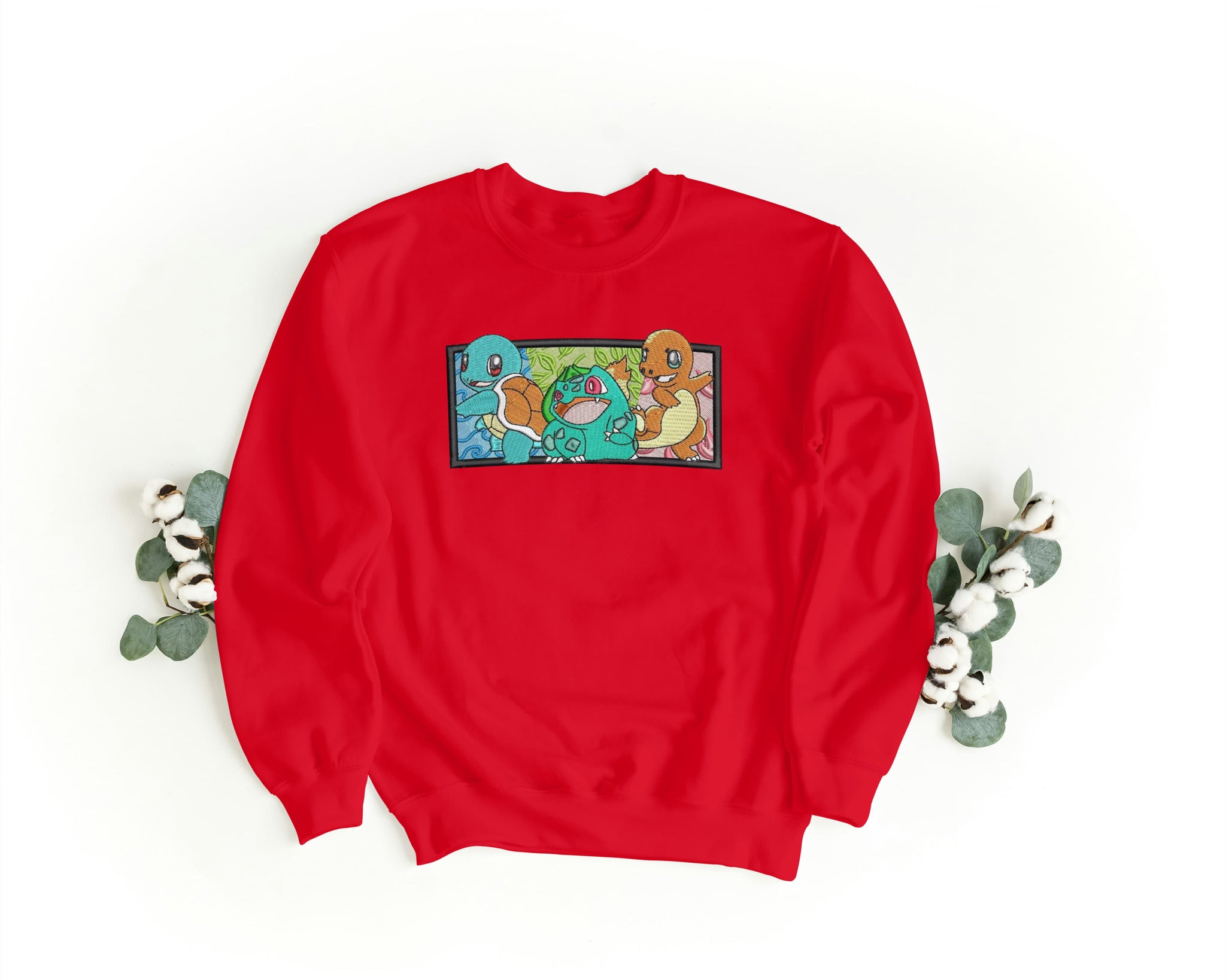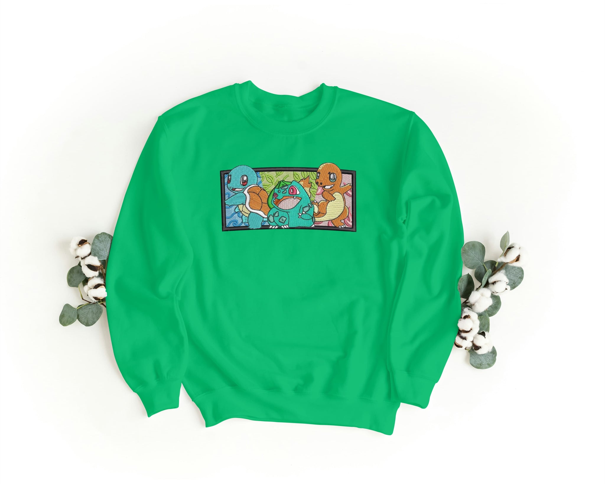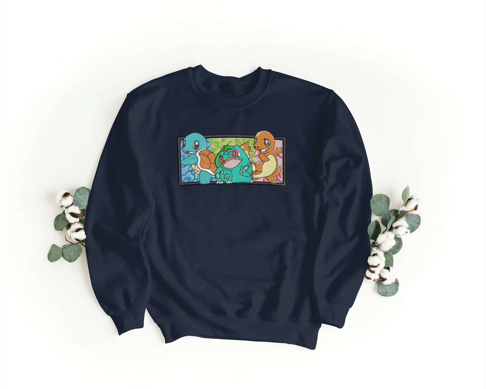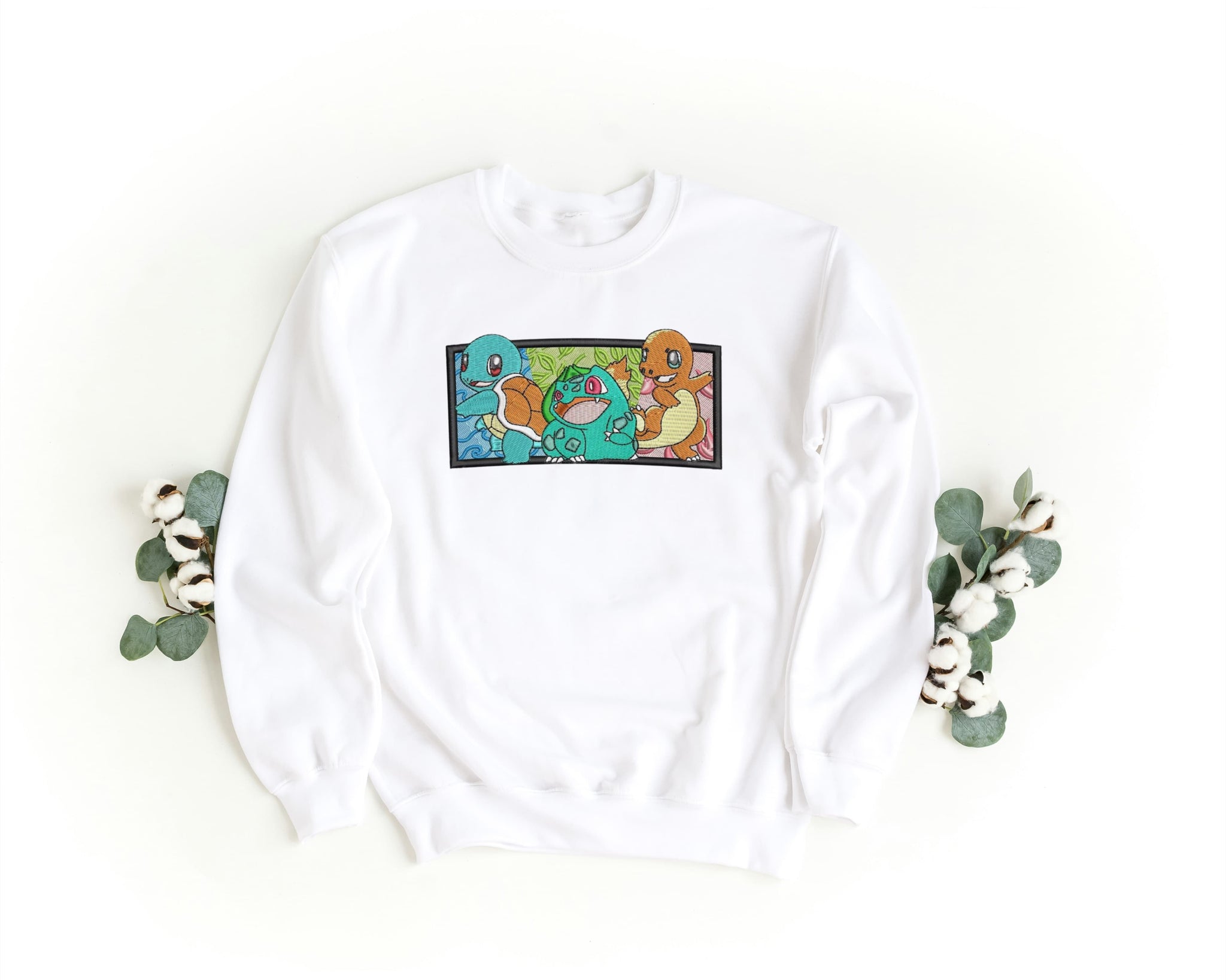 Felpa Ricamata Unisex – Morbida – Stile Streetwear – Bulbasaur Charmander Squirtle