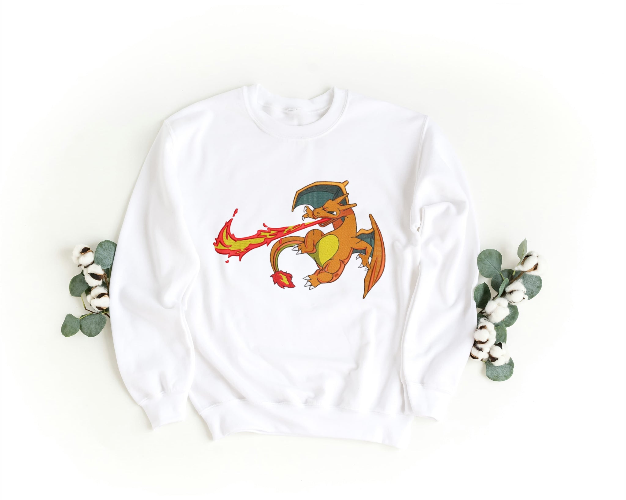Felpa Ricamata Unisex – Morbida – Stile Streetwear – Swoosh + Charizard