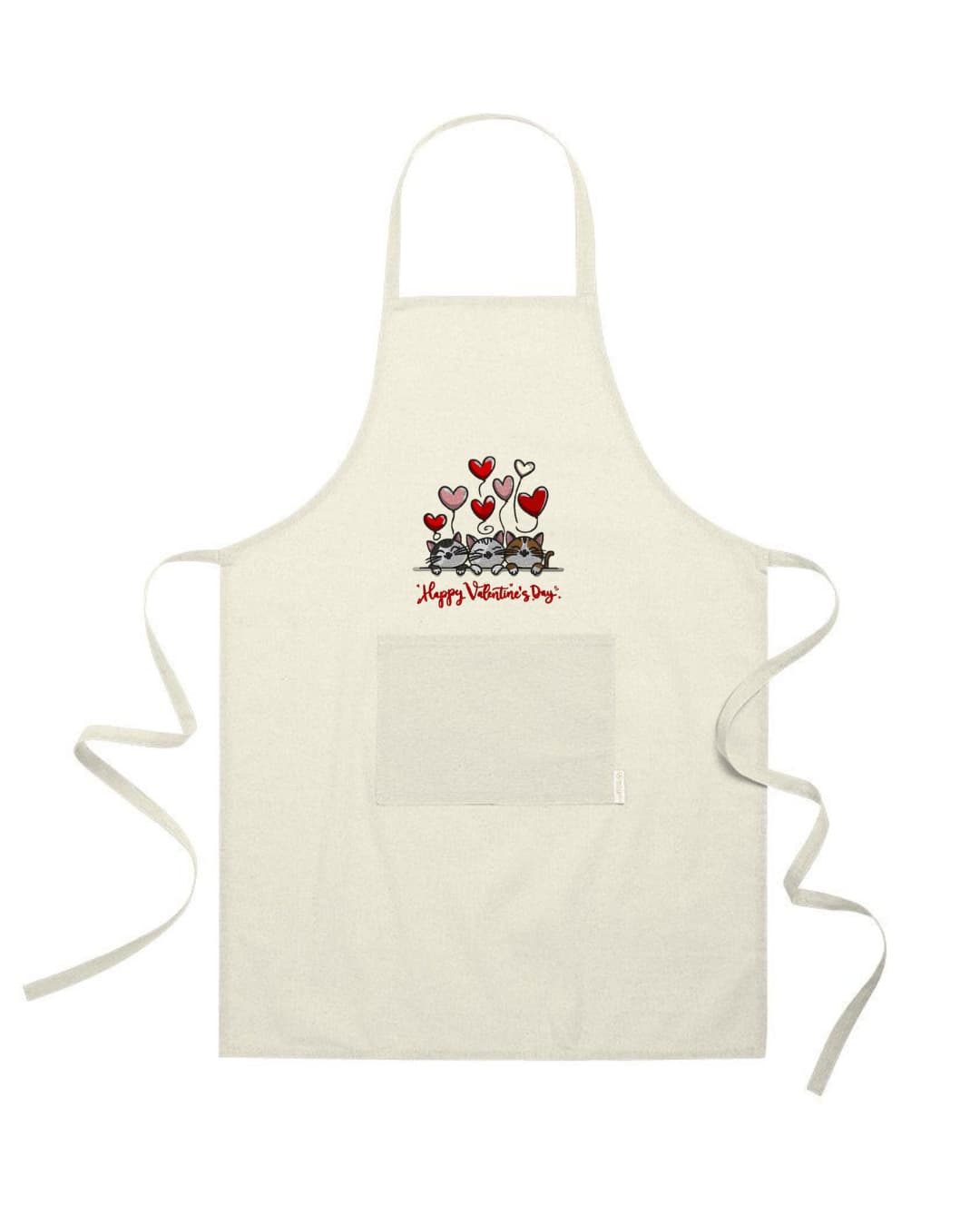 👩👨🏼🍳 Grembiule in cotone riciclato Nature – ricamo Gatti Happy Valentines Day